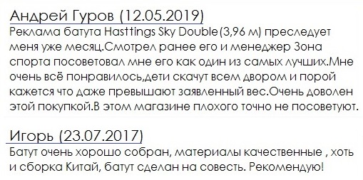 Разумеется, это не полный список качественных батутов. Если Вам нужна помощь в подборе батута, который будет служить верой и правой долгие годы, мы с удовольствием Вам в этом поможем!